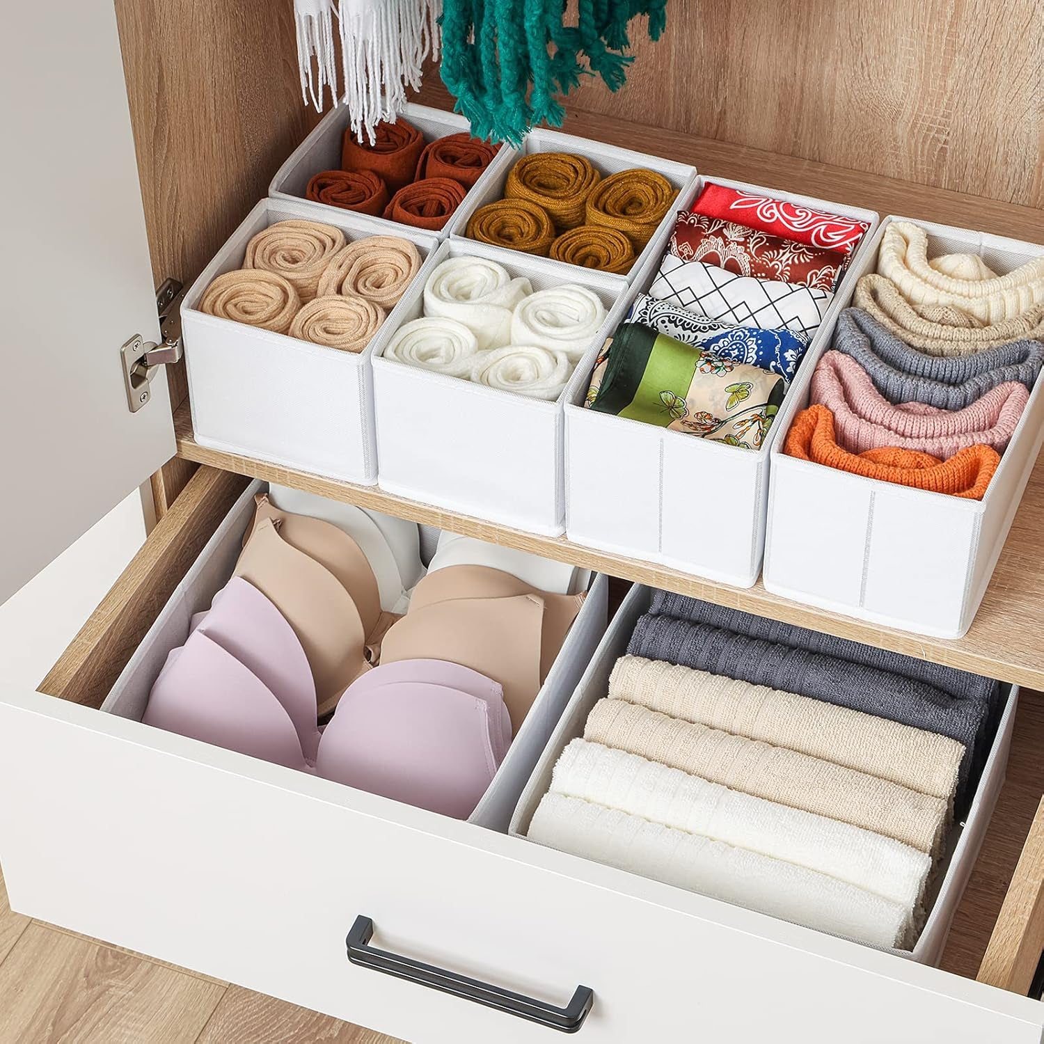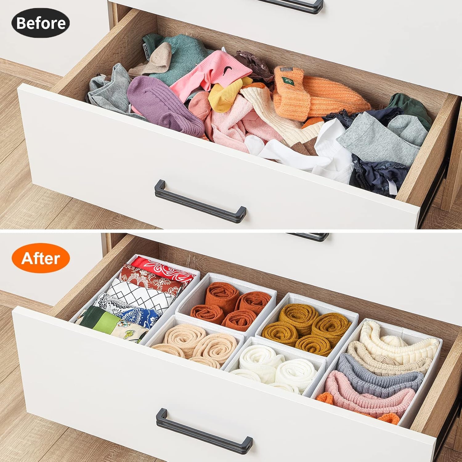 Transform messy drawers into perfectly organized spaces. This 3-piece foldable fabric organizer set includes small, medium, and large bins designed to neatly store underwear, bras, socks, T-shirts, and more.