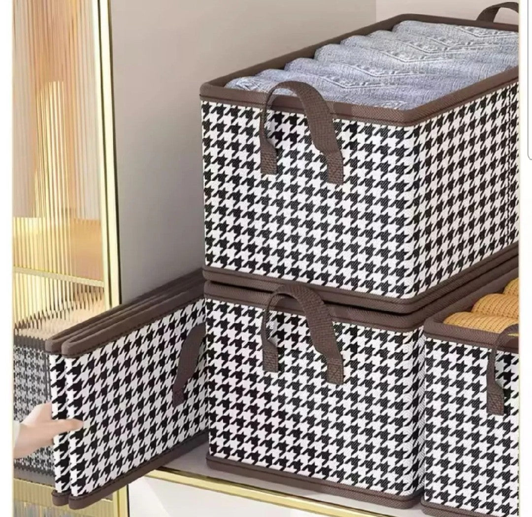 This Clothing Storage Basket is designed to neatly store folded clothes, towels, bedsheets and daily use items in one place. Made from strong and durable fabric, it helps protect your clothes from dust and clutter while giving your wardrobe a clean and stylish look. The basket features sturdy side handles for easy lifting and placement inside cupboards or on shelves.